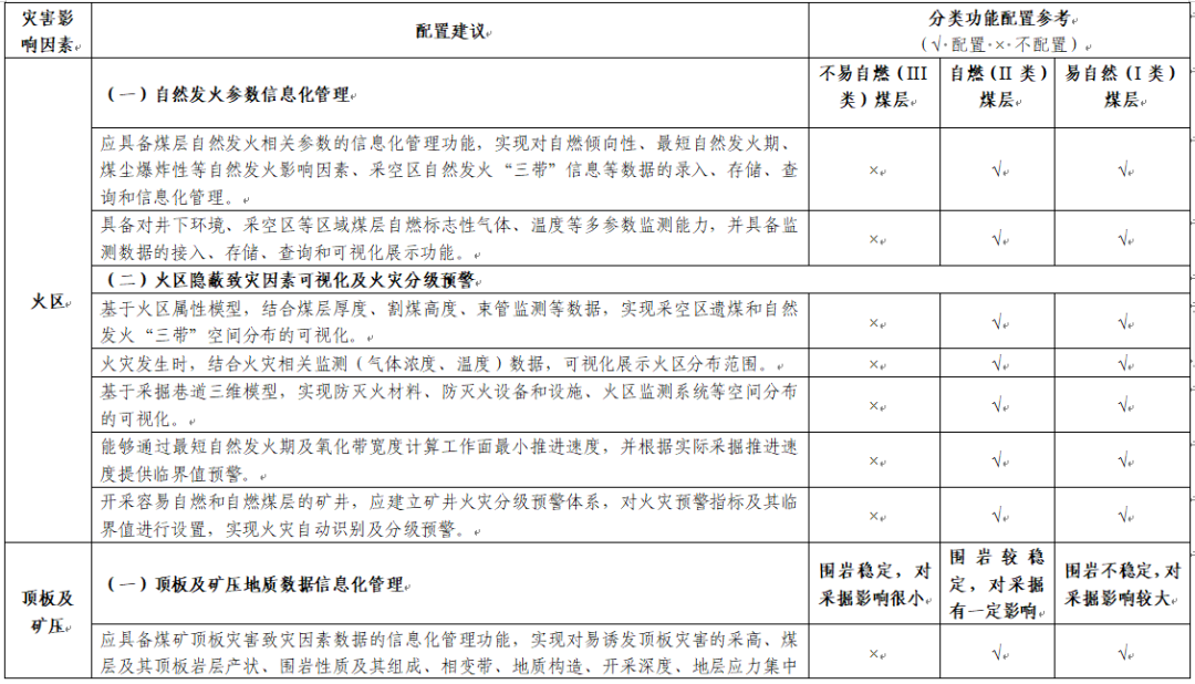 1.应具备煤层自然发火相关参数的信息化管理功能,实现对自燃倾向性、最短自然发火期、煤尘爆炸性等自然发火影响因素、采空区自然发火“三带”信息等数据的录入、存储、查询和信息化管理。