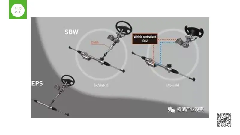 SBW(steering by wire)的发展与EPS一脉相承,其所用到的关键部件在EPS中一样有应用,其系统相对于EPS需要有冗余功能。